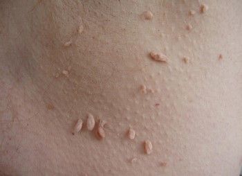 Типичные места появления акрохордонов: шея, подмышечные области, складки под молочными железами и паховые. Это мягкий возвышающийся узелок цвета нормальной кожи или чуть темнее; расположен на тонкой «ножке» и имеет размеры от 1 мм до 1 см, в среднем.