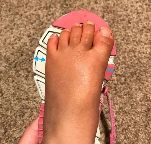 Передний отдел обуви должен быть широким, чтобы не давить на пальцы или ногти и не вызвать проблемы с кожей, пальцами и ногтями. Если приложить стельку к стопе или приложить подошву обуви к стопе (левый ботинок к правой стопе и наоборот), то между краями стопы и обуви / стельки должно остаться свободное пространство.