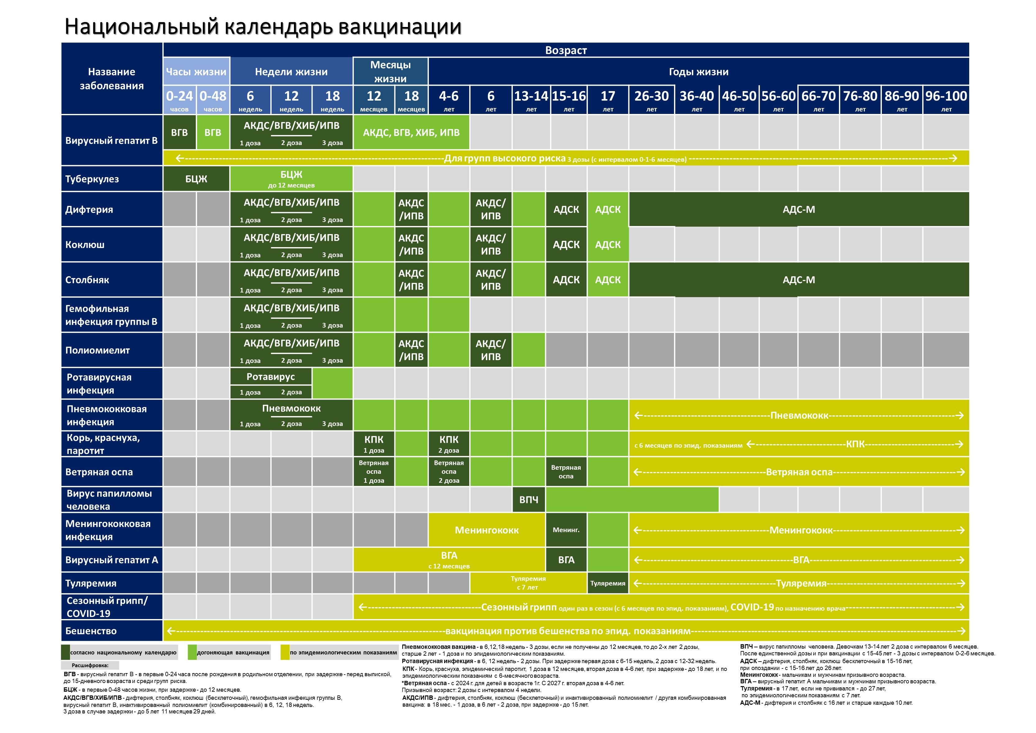 • Ветряная оспа — внесена в национальный календарь с 2024 года. Ожидается закупка вакцины Варилрикс (Бельгия)